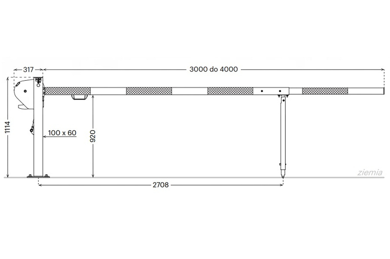 Ramie szlabanu posiada wymiar 3 metrów. Można je przedłużyć za pomocą wysięgnika aluminiowego, który ma 1 m. W ten sposób możemy dostosować dowolnie szerokość wygrodzenia względem potrzeb istniejących na miejscu montażu