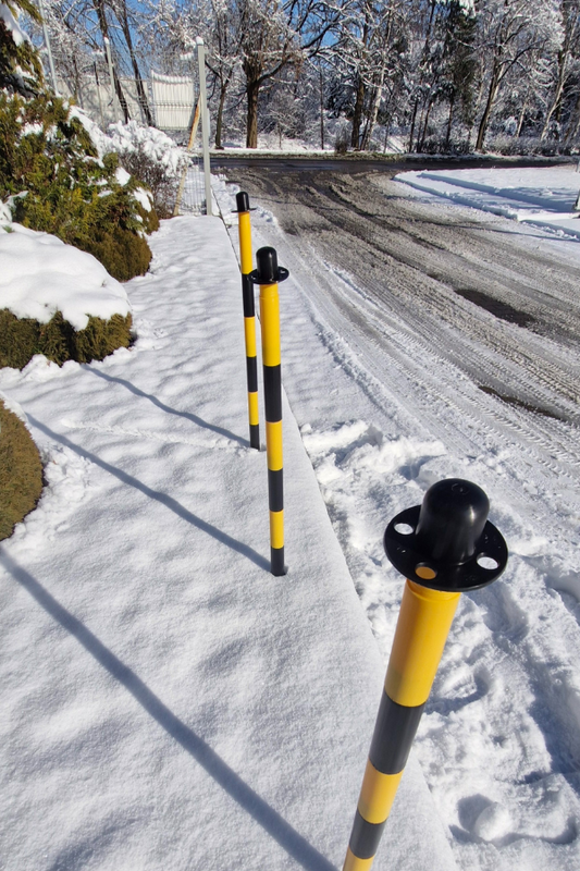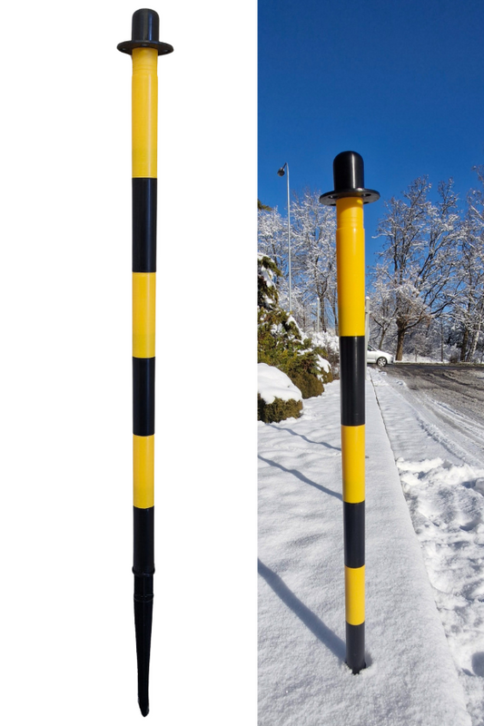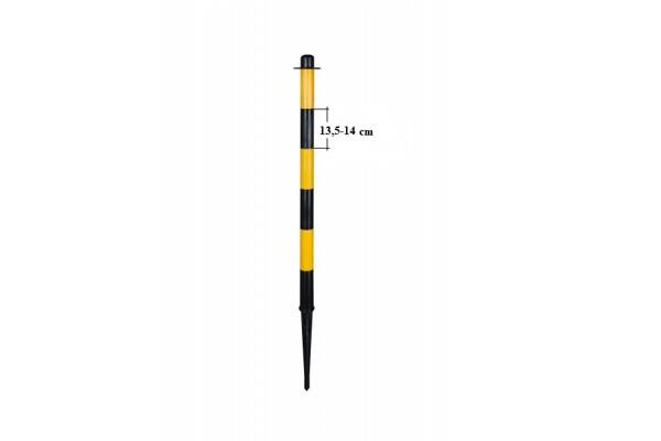 Słupki wbijane z tworzywa sztucznego używane są w terenie, gdzie grunt pozwoli na wbicie podstawy słupka i zapewni stabilność. Mobilność słupków pozwala na szybką i bezproblemową zmianę jego położenia. Słupki dostępne są w kolorze żółto-czarnym.