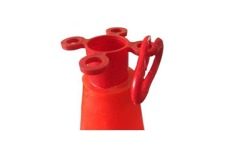 Łącznik stosowany do słupków wygradzających. Wykonany jest z lekkiego tworzywa sztucznego. Cechuje się wysoką odpornością i wytrzymałością mechaniczną na rozerwanie 40 kg, odpornością na sól i chemikalia. Dostępny w kolorach czerwonym i czarnym.