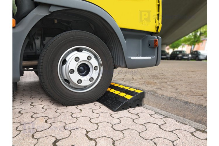 - Dostępność – łagodny najazd pomaga pokonać niski krawężnik także wózkom inwalidzkim i wózkom dziecięcym.