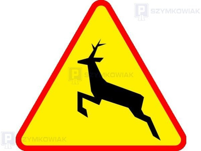 - Znak ostrzega przed możliwością napotkania na drodze zwierząt dzikich.