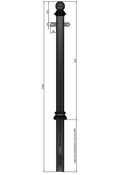 - Słupek stalowy retro stylowy 60,3 mm z zaczepem na łańcuch – elegancki i trwały słupek miejski, wysokość użytkowa 90 cm, stal malowana proszkowo (RAL 9005). Wyposażony w zaczep do łańcucha, z ozdobną rozetą w komplecie.