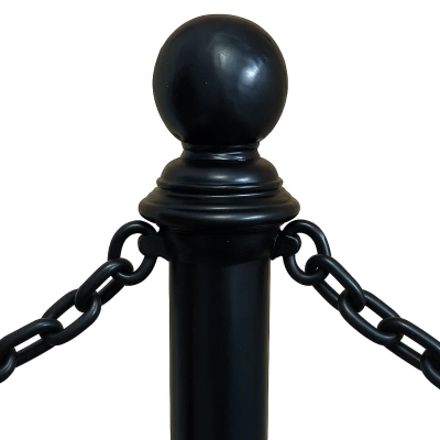 Model wyposażony jest w zaczep na łańcuch (1 rząd), co umożliwia szybkie i estetyczne łączenie kilku słupków w ciąg zabezpieczający. Dzięki temu można łatwo stworzyć barierę odgradzającą strefy piesze od jezdnych, zabezpieczyć wjazdy lub chronić przestrzenie zielone.