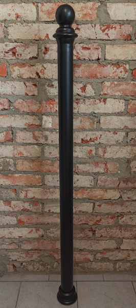 Słupek wykonano z rury stalowej Ø60,3 mm o grubości ścianki 2 mm. Całość została poddana procesowi piaskowania, zabezpieczona podkładem cynkowym oraz wykończona trwałym malowaniem proszkowym w kolorze RAL 9005 (czarny). Taka kombinacja warstw ochronnych zapewnia wieloletnią odporność na korozję i warunki atmosferyczne, a jednocześnie gwarantuje elegancki wygląd.