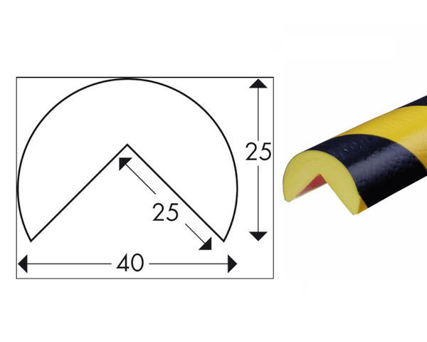 - Profil ochronny Knuffi typ A to skuteczna ochrona krawędzi i naroży, wykonany z trwałej pianki poliuretanowej, odpornej na uderzenia, ścieranie i warunki atmosferyczne. Kolor ostrzegawczy żółto-czarny.