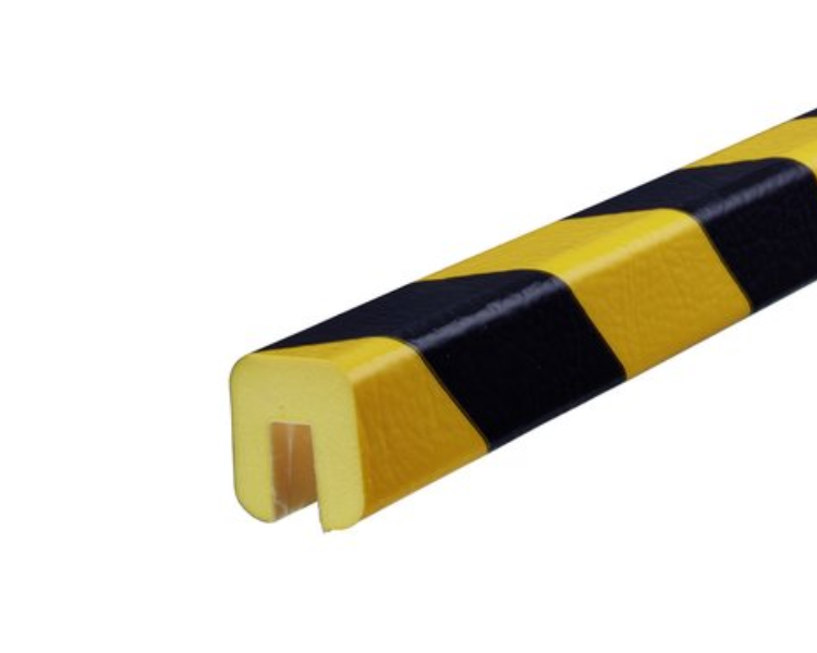 - Knuffi profil ochronny typ G – samoprzylepny. Wykonany z pianki poliuretanowej, chroni krawędzie i narożniki przed uszkodzeniami. Widoczny żółto-czarny wzór ostrzegawczy, odporny na temperatury od -40°C do +90°C.