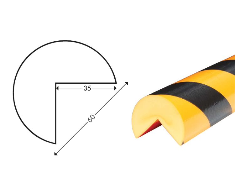Odbój do stosowania bezpośrednio na krawędziach i narożach. Wykonany jest z pianki poliuretanowej i zapewnia ochronę przed zarysowaniami oraz uderzeniami jak również chroni np. pracowników w magazynie przed urazami powstałymi w wyniku ewentualnych uderzeń. Taśma samoprzylepna znajdująca się na produkcie ułatwia szybki i bezinwazyjny montaż.