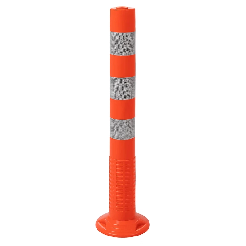 Słupek wykonany jest z kauczuku termoplastycznego w kolorze czerwonym. Posiada 3 ostrzegawcze pasy z białej folii odblaskowej.