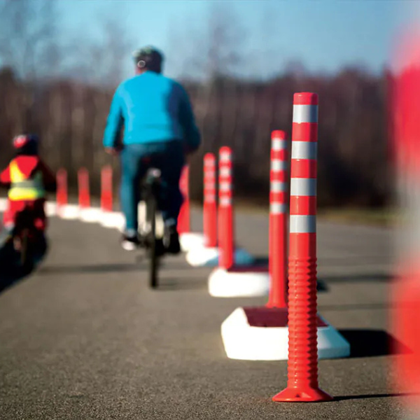 Dzięki odpowiedniemu materiałowi słupek po najechaniu na niego uchyla się  i powraca do pierwotnego kształtu w pozycji pionowej.