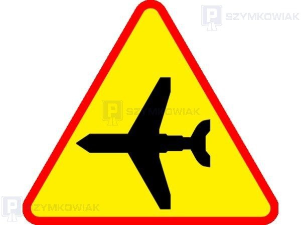 • Znak ostrzega przed możliwością nagłego pojawienia się nisko przelatującego samolotu lub śmigłowca.