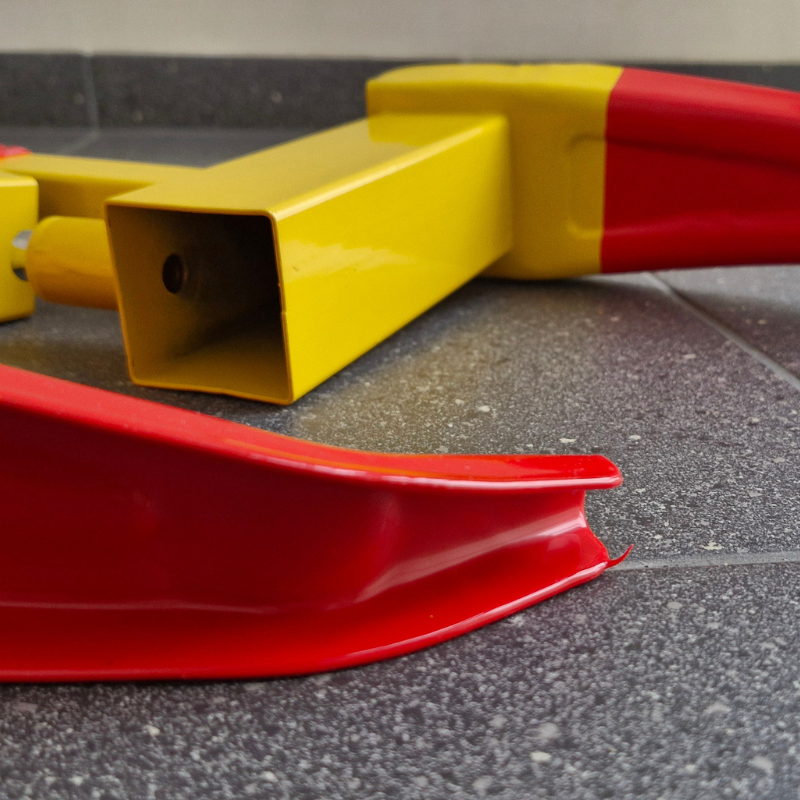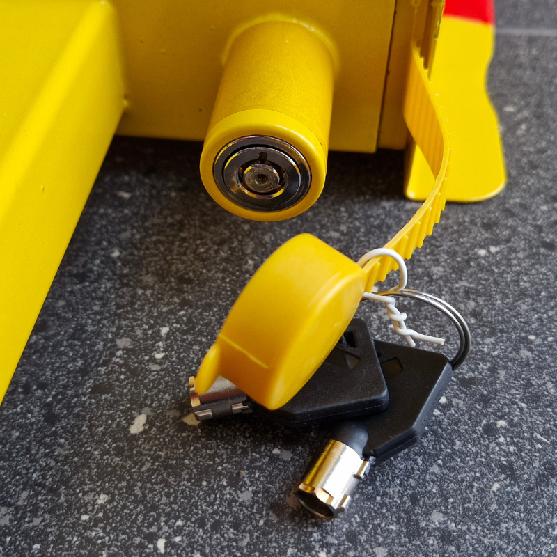 • Dobry poziom widoczności — kolory żółty i czerwony sprawiają, że zamontowaną blokadę łatwo zauważyć — to ostrzeżenie i przypomnienie.