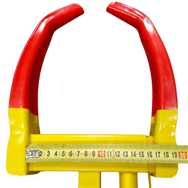Blokada koła BlockClip to profesjonalne rozwiązanie do unieruchomienia pojazdów z szerokością opony do 295 mm. Blokada na koło samochodu to solidne zabezpieczenie antykradzieżowe wykonane z wytrzymałej stali i pokryte żółtą farbą + czerwoną powłoką ochronną, dzięki czemu jest dobrze widoczna i skutecznie odstrasza złodziei. Regulowana konstrukcja pozwala dopasować ją do większości kół samochodów osobowych, busów, kamperów czy przyczep. Montaż jest szybki i prosty – wystarczy nałożyć blokadę na koło i przekręcić kluczyk. To niezawodny sposób na ochronę pojazdu podczas postoju w niestrzeżonych miejscach.