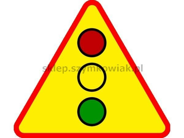 • Znak ostrzega przed miejscem, w którym ruch jest kierowany za pomocą sygnalizacji świetlnej.