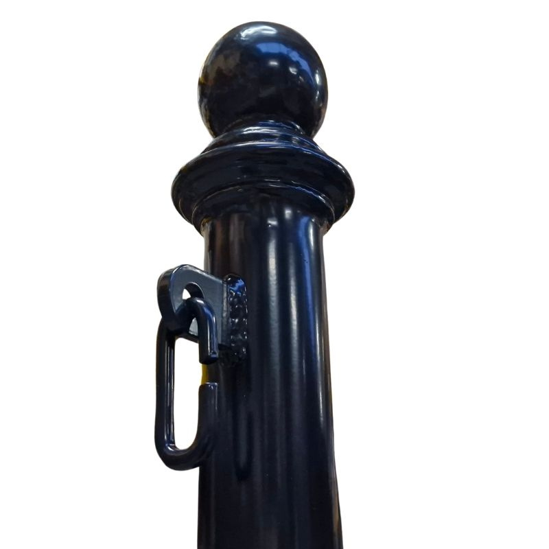- Solidny łącznik do łańcucha i słupka, wykonany z trwałego materiału, zapewnia szybki i stabilny montaż łańcucha w systemach odgradzających.