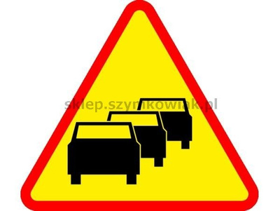 • Znak ostrzega przed częstym występowaniem zablokowania ruchu ze względu na natężenie ruchu pojazdów, gdy stojące pojazdy mogą nie zostać w porę dostrzeżone przez kierującego.