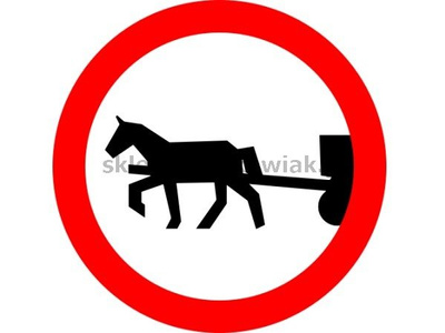 - Znak zakazuje ruchu pojazdów zaprzęgowych, a także jeźdźców i poganiaczy.