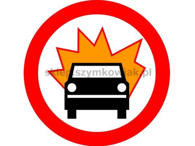 - Znak zakazuje ruchu pojazdów przewożących w ilościach, dla których jest wymagane oznakowanie pojazdu tablicami ostrzegawczymi barwy pomarańczowej, towary klas ADR