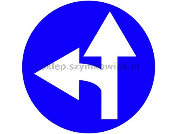 - Znak nakazuje kierującemu jazdę prosto lub w lewo. Stosowany na skrzyżowaniach o więcej niż czterech wlotach, gdy nie można zastosować znaku B-22 "zakaz skręcania w prawo".