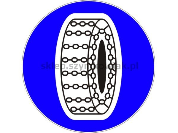 - Znak oznacza, że kierujący pojazdem silnikowym ma obowiązek stosować łańcuchy przeciwpoślizgowe na co najmniej dwóch kołach napędowych.